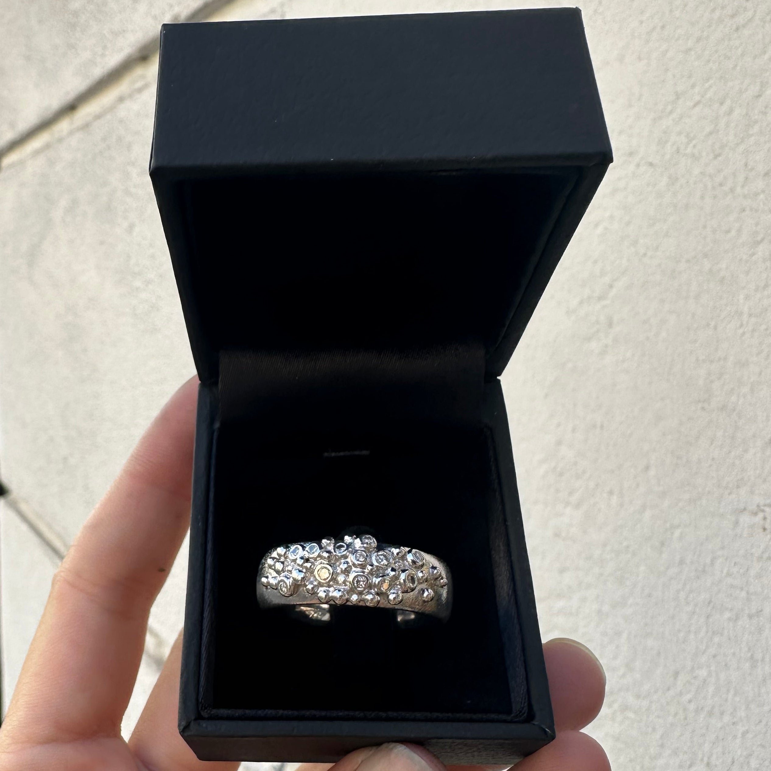 Det tager omkring 3-4 uger, afhængig af designet, fra første samtale til det færdige smykke. Vi tager dig med i hele processen og vi taler sammen undervejs.